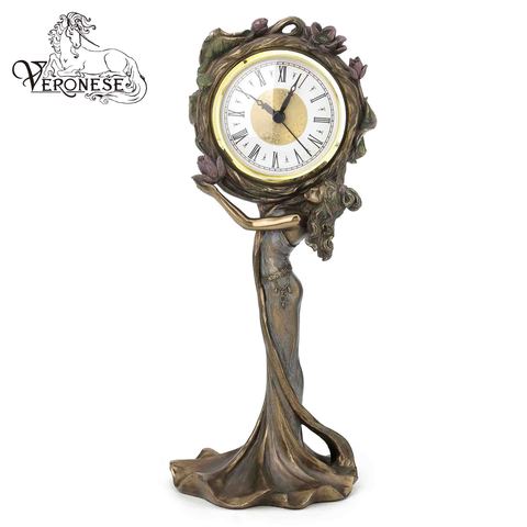 VERONESE DESIGNアールヌーボーシリーズLOTUS CLOCK (MBZ + COLOR) ポリレジン & コールドキャストブロンズ家庭用装飾置物